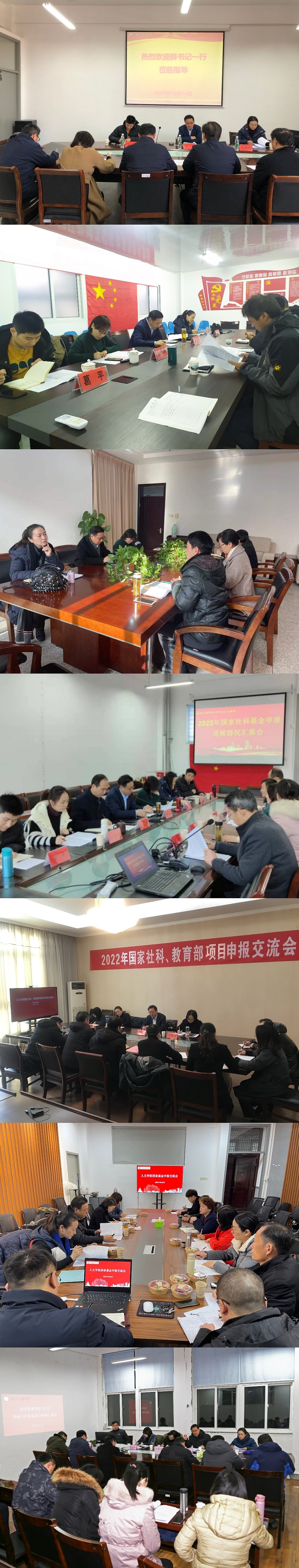 为扎实做好国家社科基金项目的培育与申报工作,12月14日至12月27日,校党委副书记薛浩率社会科学处同志先后赴外国语学院、体育学院、图书馆、马克思主义学院、设计艺术学院、人文社会科学学院、经济管理学院等文科学院、部门,对各学院及有关部门2022年国家社科基金项目拟申报项目进行逐一过堂,共听取了41位教师的项目申报进展汇报。各文科学院、部门相关领导、科研秘书及拟申报2022年国家社科基金项目的教师参加了会议。