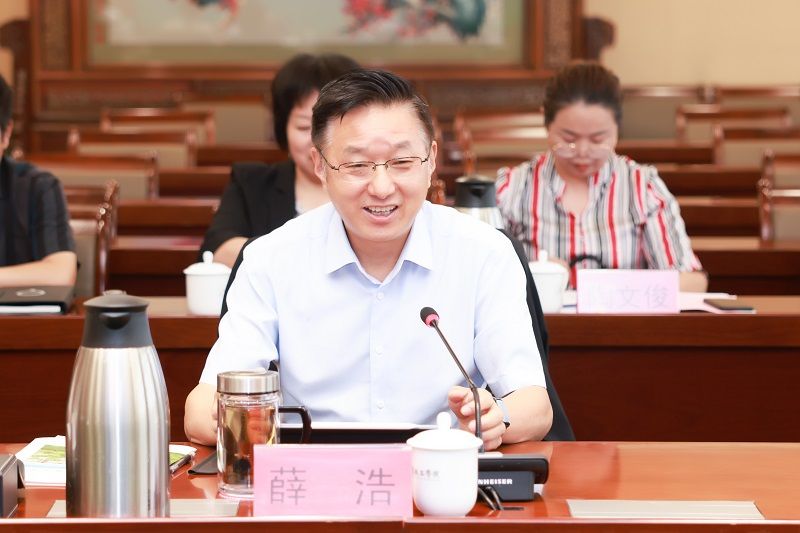 薛浩代表学校对许佃兵一行的到来表示热烈欢迎,对省规划办来我校调研指导国家社科基金项目表示感谢。他介绍了我校的发展历程、办学规模、人才培养、学科特色及近年来学校在高质量发展中取得的突出成绩。他希望省规划办领导大力支持我校高层次项目申报,进一步指导我校开展高质量的社科研究工作。