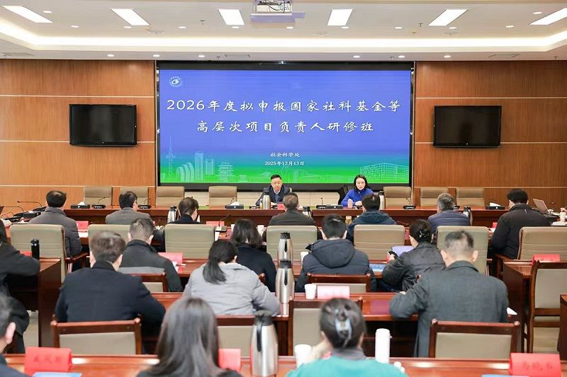 为系统推进有组织科研,切实提升高层次社科项目申报质量与立项水平,12月13日至14日,学校在行政楼九楼视频会议室举办2026年度拟申报国家社科基金等高层次项目负责人研修班(第一阶段)。校党委副书记薛浩出席开班仪式并作动员讲话,拟申报2026年度国家社会科学基金、教育部人文社会科学研究项目负责人,以及社会科学处全体人员参加,研修班由社会科学处副处长焦微玲主持并作总结。