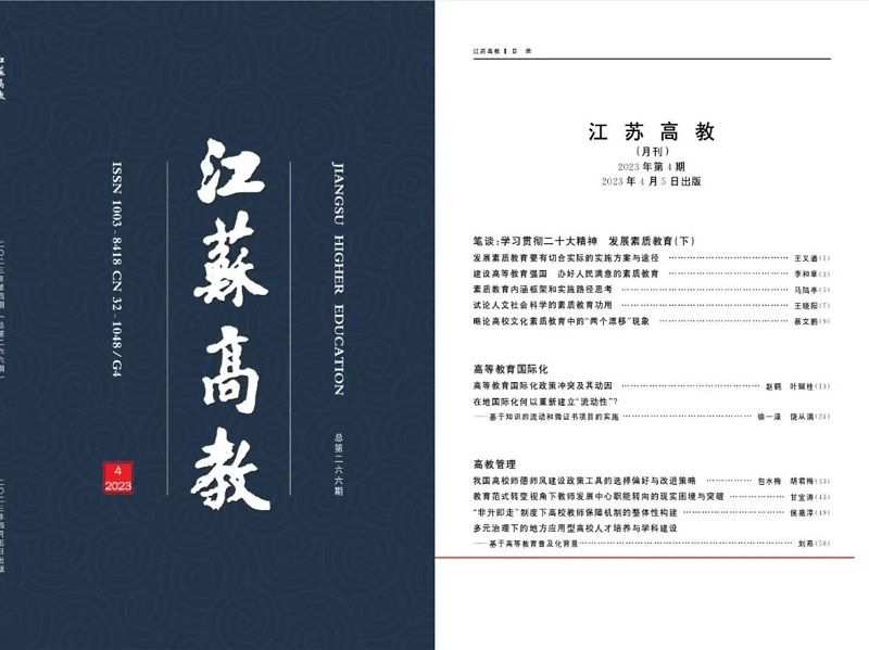 党委巡察工作办公室刘燕老师的文章《多元治理下的地方应用型高校人才培养与学科建设——基于高等教育普及化背景》,在江苏高教2023(04)期刊出。